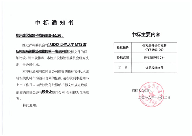 華北水利水電大學 中標通知書